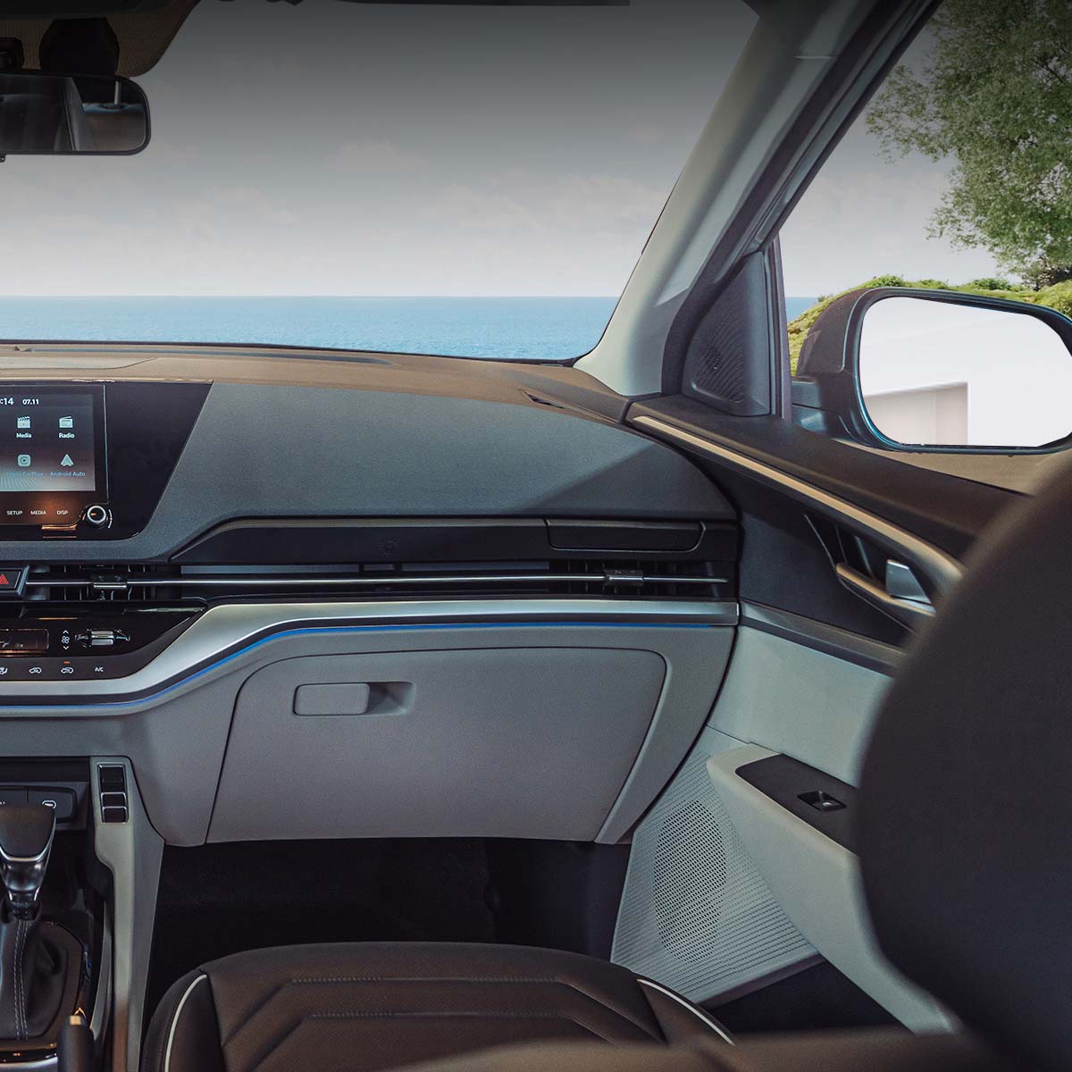 Phía trước Kia Carens – Mẫu SUV thế hệ mới, cuốn hút ánh nhìn với lưới tản nhiệt cách điệu họa tiết digital nối liền dải đèn định vị LED độc đáo, lấy cảm hứng từ bản đồ các chòm sao cùng cụm đèn chiếu sáng mô phỏng tinh thể pha lê tinh xảo.